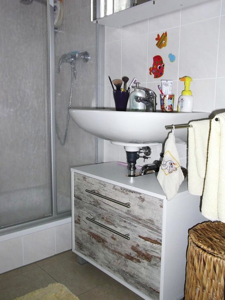 Das Badezimmer mit WC (Fenster) verfügt über eine Duschkabine, Waschtisch, Waschmaschinen Anschluß.
