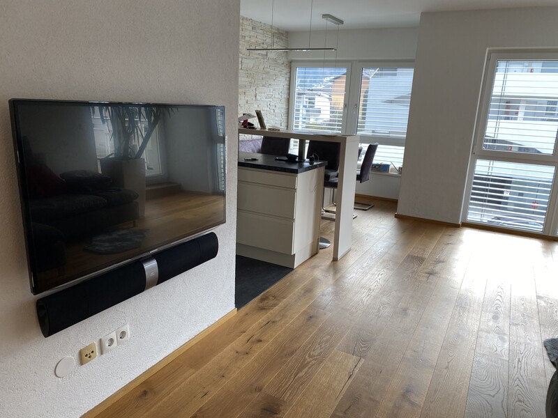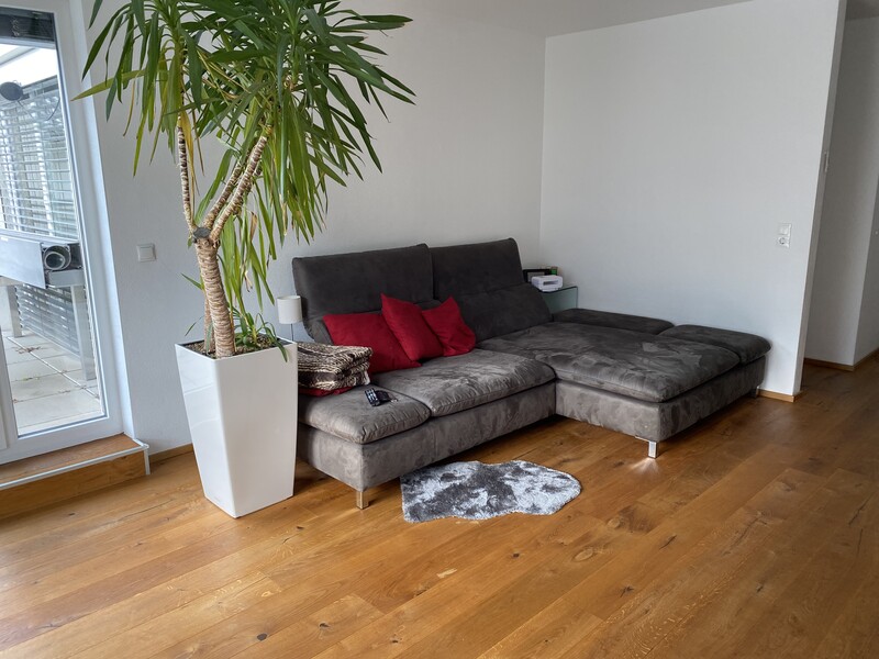 Die 3 Zimmer umfassen Gesamt 80 m2 Wohnfläche mit einem Bad mit Wanne UND Dusche, Keller und eine Südterrasse mit zusätzlich 20 m2.