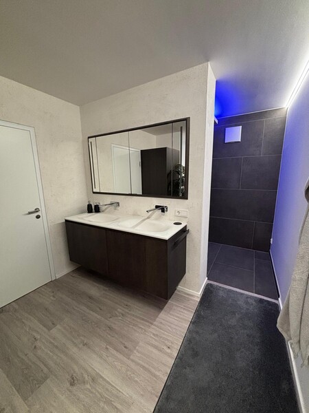 Die Wohnung verfügt über die Finessen einer besonderen Beleuchtung, einer besonderen Einrichtung und einer Küche, welche keine Wünsche offen lässt.